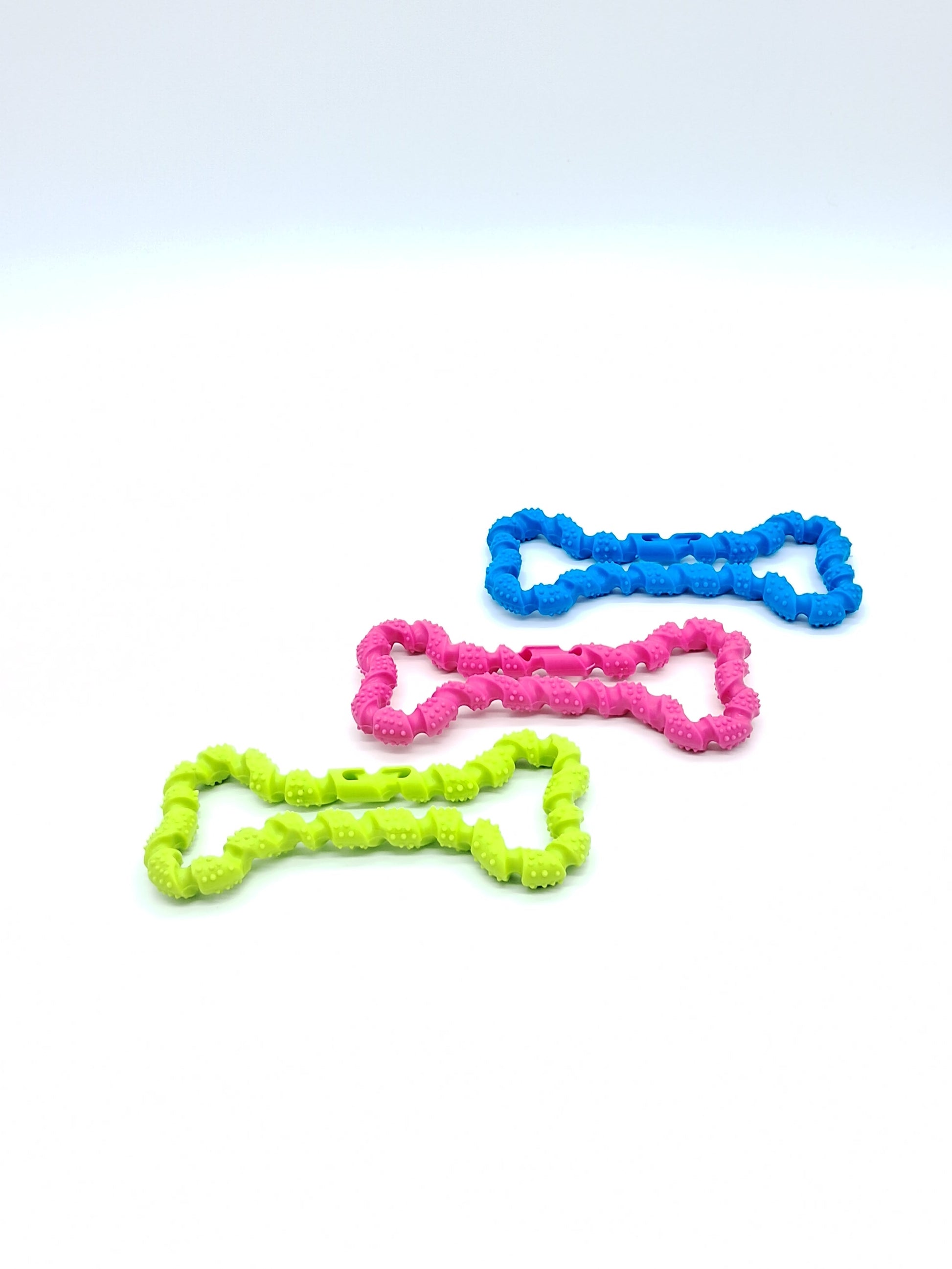 This tough tug toy is made from durable, non-toxic plastic and is safe for your dog to chew on. It's great for playing tug of war or fetch, and it helps keep your dog's teeth clean and healthy.